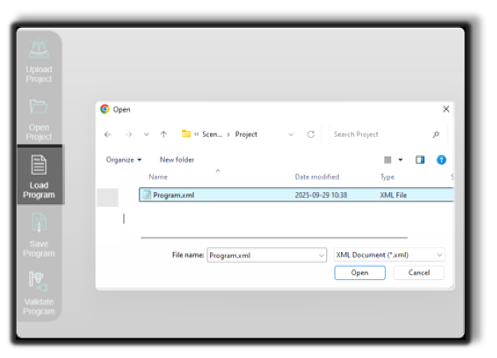 - Step 1: Navigate to the “Load Program” button and click it - located in the left panel of the Shopfloor Assistant user interface.