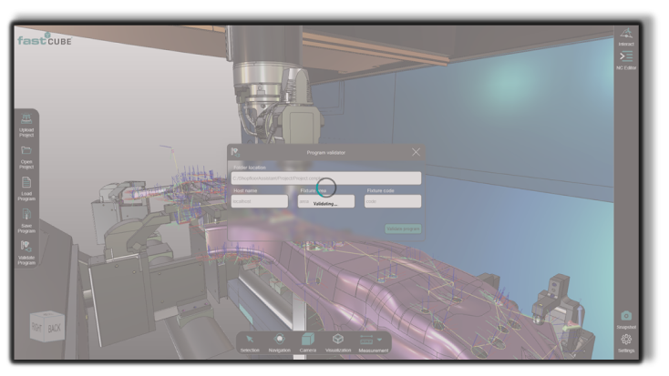 The system will start validation on the virtual controller of the NC program and highlight any issues.
