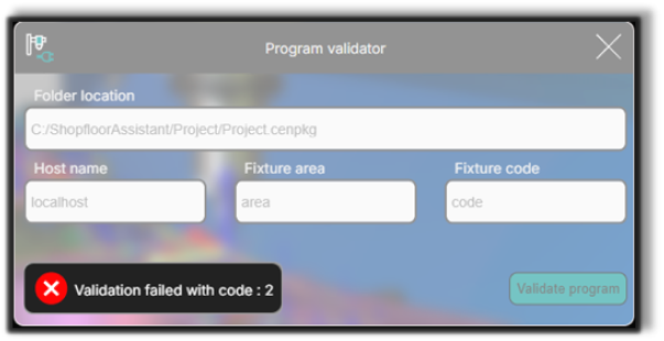 Once validation finishes, status notifications appear in the bottom-left corner of the validation window, clearly informing the operator whether the validation was successful or if any errors were detected.