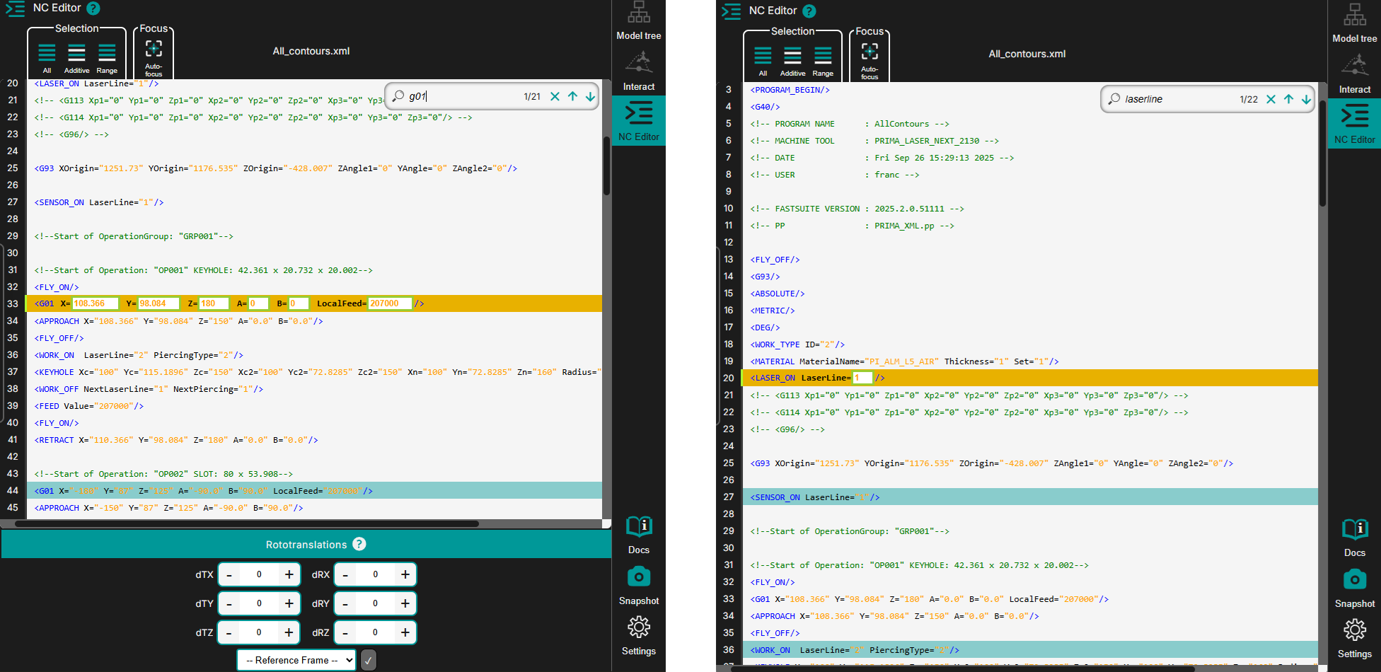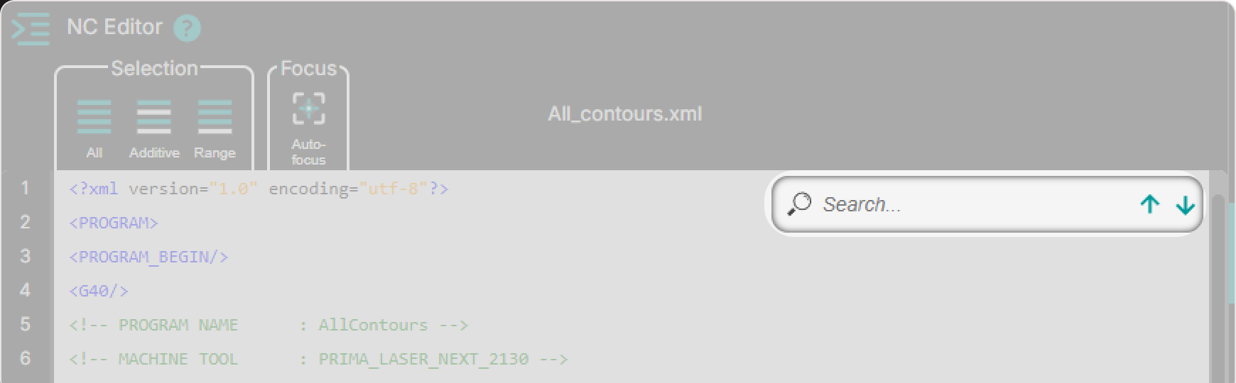 - La recherche est particulièrement utile avant d’appliquer des modifications ligne par ligne ou de revoir des attributs NC répétés.