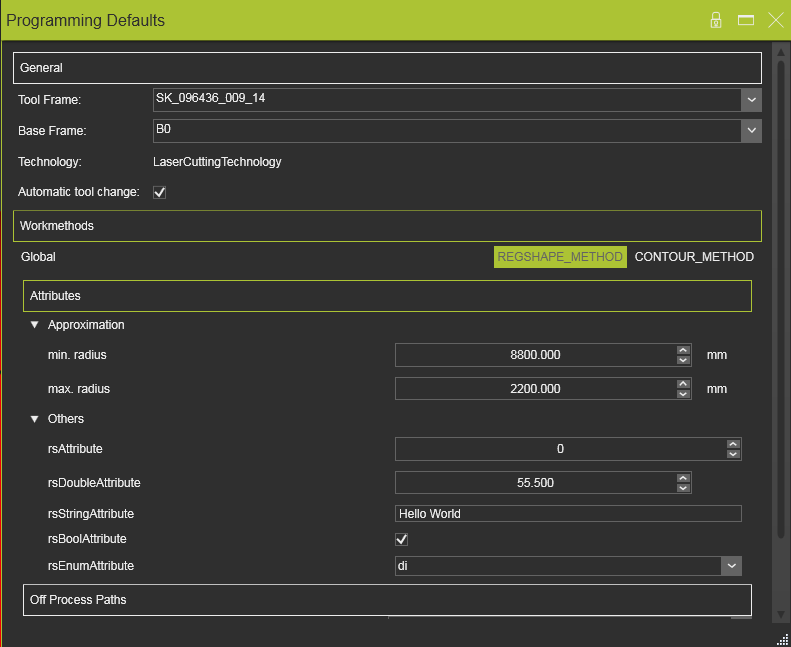 max_radius = sysAttribCreator.AddMaxRadius(2.2, USER_ATTRIBUTE | PROCESS_ATTRIBUTE | GLOBAL_ATTRIBUTE | OPERATION_ATTRIBUTE)En conséquence, de nouveaux attributs apparaissent sur l’interface utilisateur :
