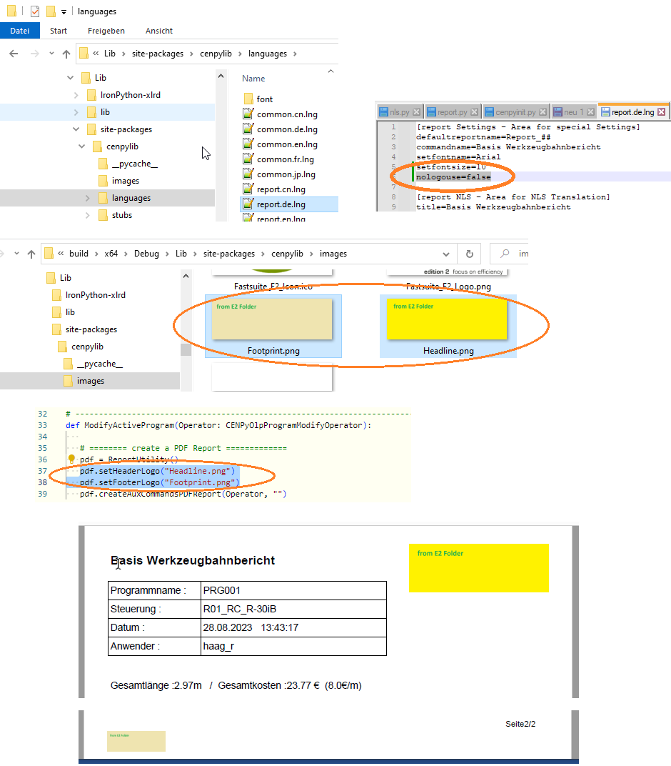 Définir les noms du logo sur le script Python avec setHeaderLogo et/ou setFooterLogo